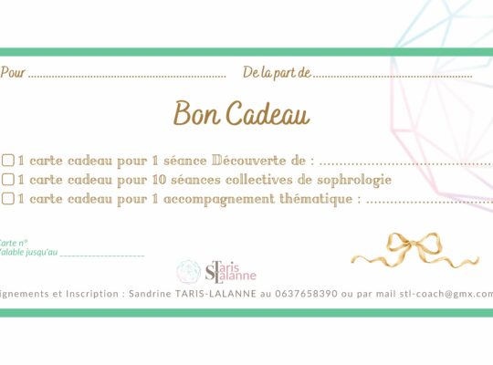 Besoin d’un cadeau original 🎁 ? Seulement quoi offrir ? Un cadeau unique, différent et à l’image de chacun.e ? Je vous propose des cartes cadeaux (séance individuelle ou pack thématique). Cartes pour 1 séance Découverte Vous pouvez choisir une carte cadeau de 1 séance au choix : Cartes pour 10 séances collectives de sophrologie …